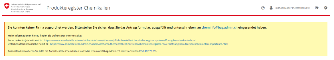 3. Kontaktieren Sie das Helpdesk (cheminfo@bag.admin.ch) mit einem Print Screen und dem Konflikt.