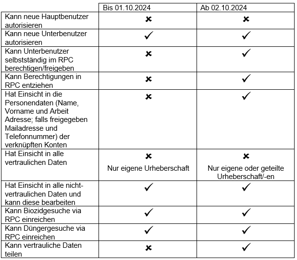 Mit der Veröffentlichung (Release Note) der Version 4.7 von RPC wurde die Benutzerverwaltung aktualisiert. Die Rolle des Hauptbenutzers wurde auf die neue Version migriert und seine Berechtigungen wie folgt angepasst: