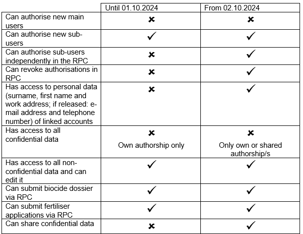 The main user has administrative rights within the RPC. Unlike sub-users, they can do the following for the reporting company: