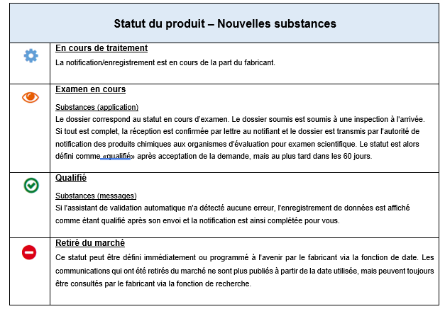 Dans le domaine autorisé du registre des produits chimiques, l’utilisateur ou le sous-utilisateur peut accéder à tous les produits qu’il a enregistrés sur la page « Rechercher un produit ».