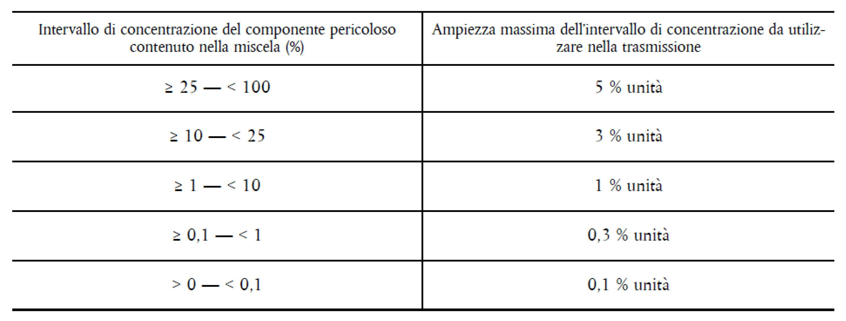 Intervalli di concentrazione applicabili agli altri componenti pericolosi e ai componenti non classificati come pericolosi
