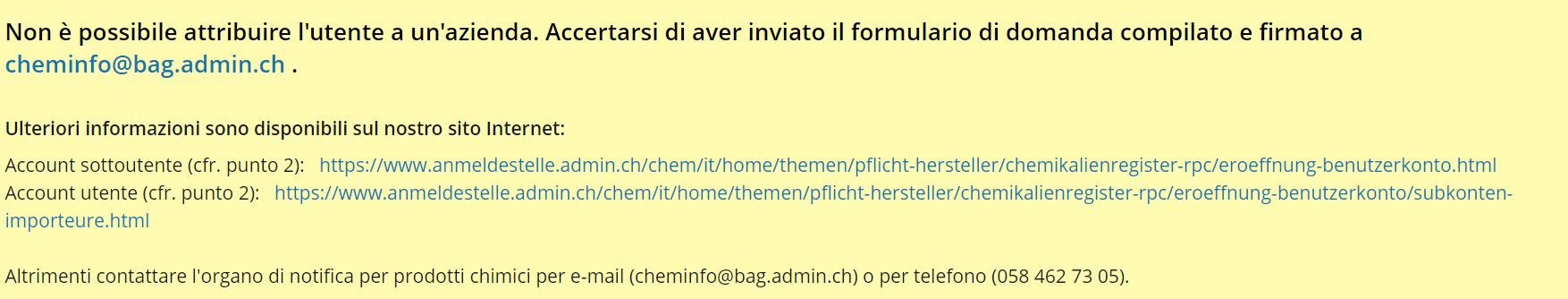3. Contattare l'helpdesk (cheminfo@bag.admin.ch) con un print screen e la spiegazione del problema.